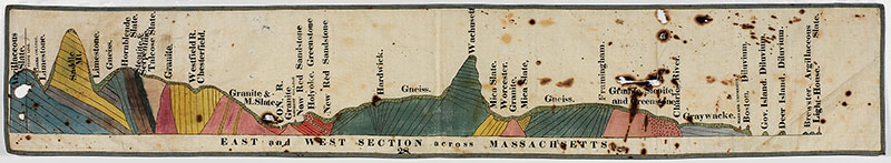 "East and West Section Across Massachusetts", 1828-1840, 302 x 58 cm., Pen and ink on linen Image courtesy of Edward and Orra White Hitchcock Papers, Amherst College Archives and Special Collections, Amherst College Library.