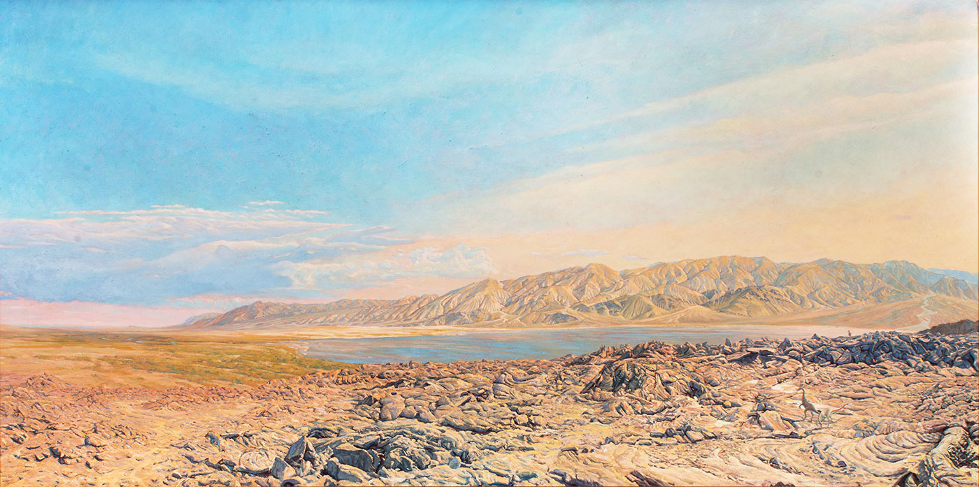 "The Eastern Border Fault Valley During the Early Jurassic", 1987, 48” x 96”, oil on canvas; Image courtesy of Beneski Museum of Natural History at Amherst College.